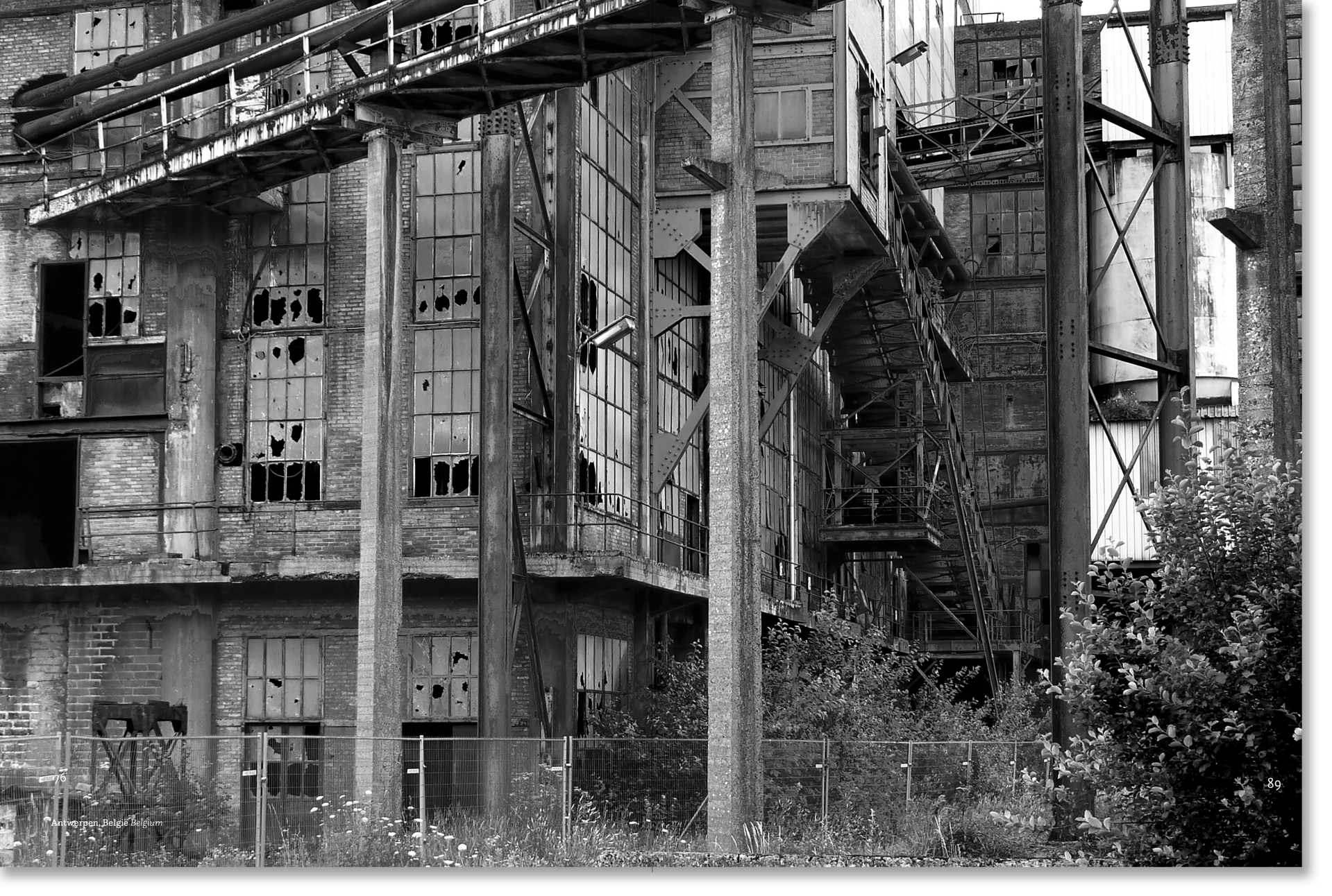 En dan is er de industriële revolutie. Op de fotobeelden is te zien hoe de mens zijn omgeving planmatig gaat inrichten en de aarde grootschalig gaat uitbaten, maar er is ook te zien hoe het landschap het weer overneemt als de mens eruit vertrokken is. Het natuurlijke verval als basis voor nieuwe groei — de altijd voortdurende oerkracht van de diepe tijd.